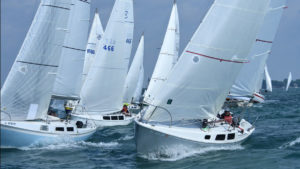 The races are windward-leeward course that include an offset mark near the windward mark and leeward gates. Each boat’s score was calculated by summing up her scores for all races.